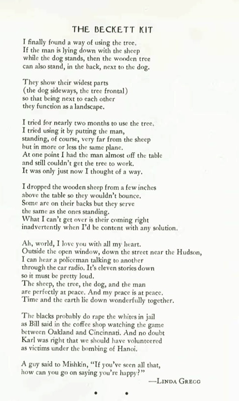 I was excited to attend a workshop with Linda Gregg; before it began, I had a kind of expectation that something magical would happen. Of course, the reality of an event usually does not meet our preconceived notions.